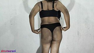 asian shemale crossdresses in black thong solo